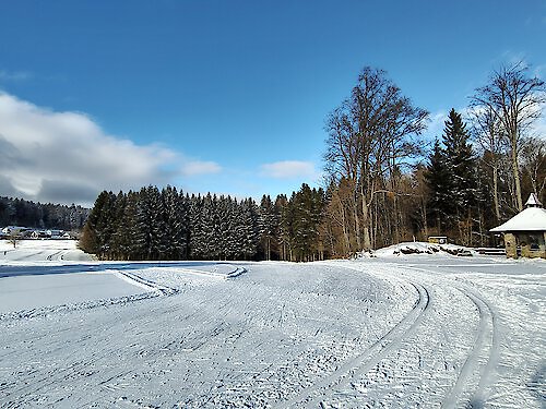 Langlauf im Bayerischen Wald: Fatima-Langlaufloipe in Klingenbrunn frisch gespurt – nur 2 Gehminuten vom Hotel Hochriegel